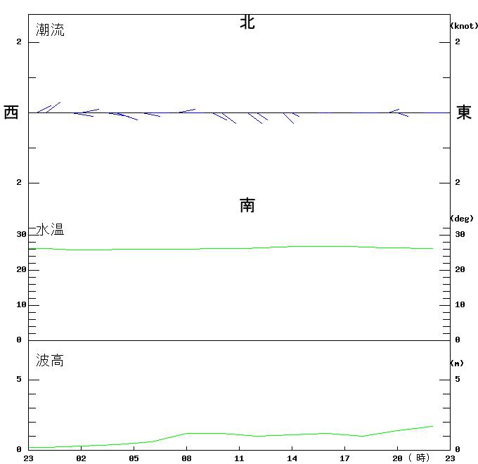 上層(6m)の潮流、上層(1m)の水温、波高