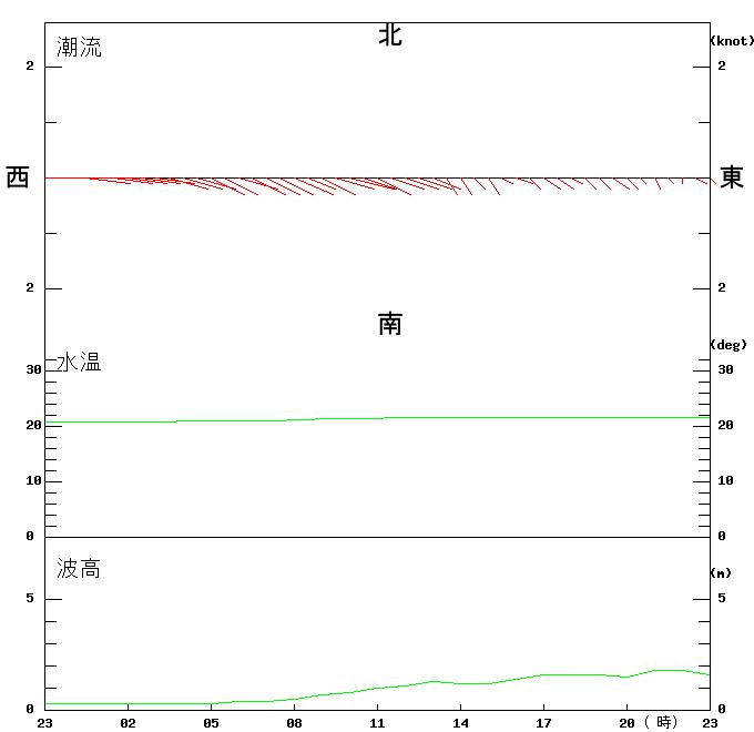 上層(6m)の潮流、上層(1m)の水温、波高