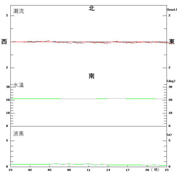 上層(6m)の潮流、上層(1m)の水温、波高