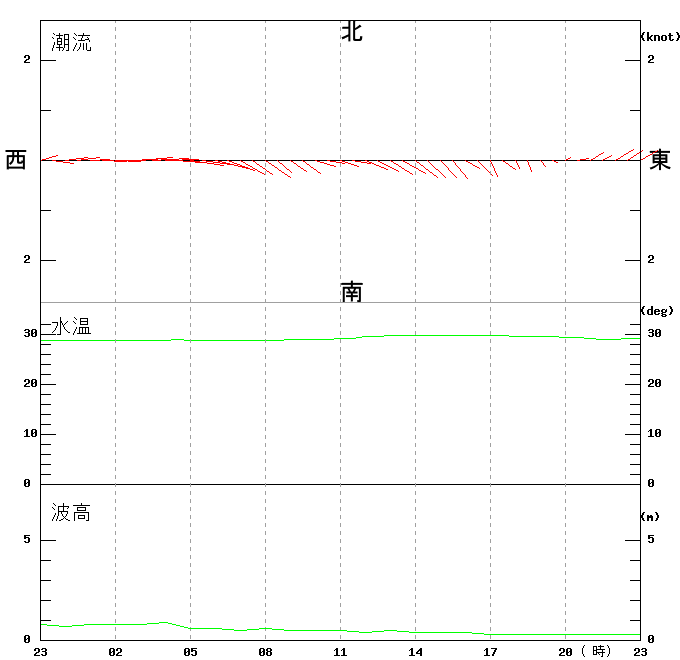 上層(6m)の潮流、上層(1m)の水温、波高