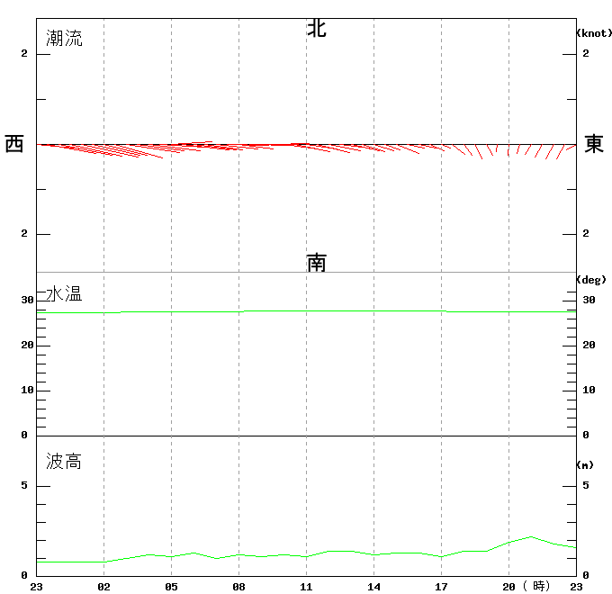 上層(6m)の潮流、上層(1m)の水温、波高