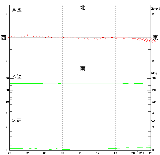 上層(6m)の潮流、上層(1m)の水温、波高