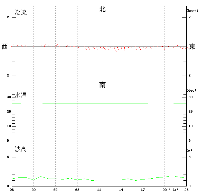 上層(6m)の潮流、上層(1m)の水温、波高