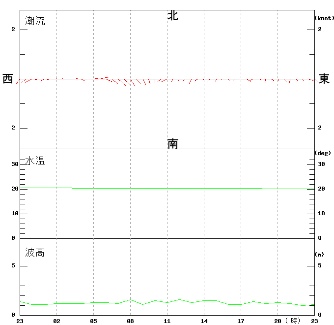 上層(6m)の潮流、上層(1m)の水温、波高
