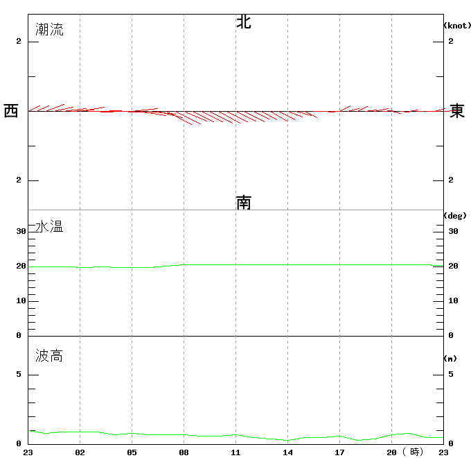 上層(6m)の潮流、上層(1m)の水温、波高