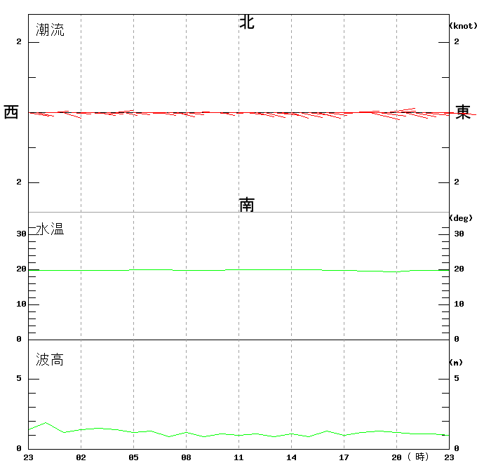 上層(6m)の潮流、上層(1m)の水温、波高
