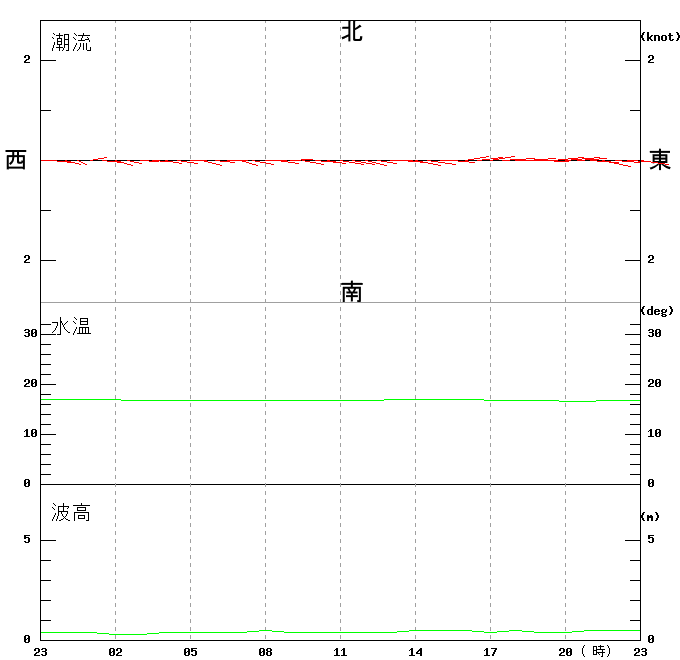 上層(6m)の潮流、上層(1m)の水温、波高